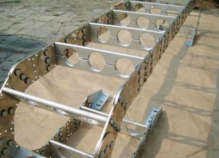 链板的高度,也就是支撑板的高度,是由电缆最大直径决定的,机床最大限度运转时,如拖链的宽度超过300mm,拖链的长度超过4m进出于稳定性原因,应考虑选择加大一号规格的拖链.