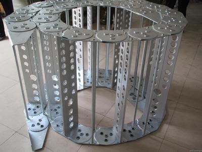 TLG型钢制拖链可承载数量多,重量大的电缆及油管,自由悬置(允许不用支承轮)长度大,支撑板可依顾客户需要制作,适用于工作母机,移动机械等.其弯曲半径为50-600mm,链板高度为35-150mm, 可任意选用.