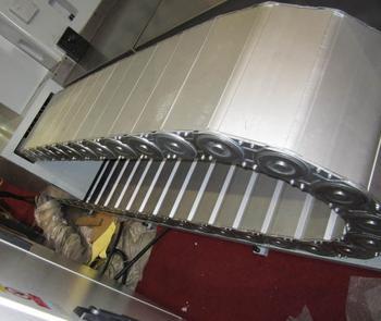 全封闭钢铝拖链适用于所有传动方式.可随意加长和缩短.全封闭钢铝拖链可承载数量多,重量大的电缆及油管,自由悬置长度大,支撑板可依顾客需要制作,使用于工作母机,移动机械等.此外,可通过改变销轴获得改变弯曲半径.欢迎广大用户与我们洽谈全封闭钢铝拖链!