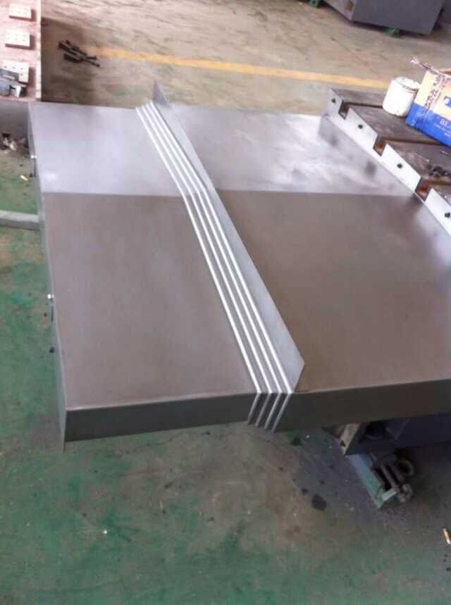 不锈钢板防护罩 龙门刨铣床导轨防护罩是机床的传统防护形式。在这一领域里钢制伸缩式导轨防护罩被广泛的应用,对防止切屑及其它尖锐东西的进入起着有效的防护作用,通过一定的