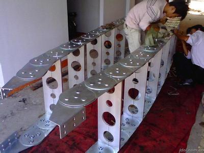 Ⅲ型钢制拖链 TLG型钢制拖链可承载数量多,重量大的电缆及油管,自由悬置(允许不用支承轮)长度大,支撑板可依顾客户需要制作,适用于工作母机,移动机械等.其弯曲半径为50-600mm,链板高度....